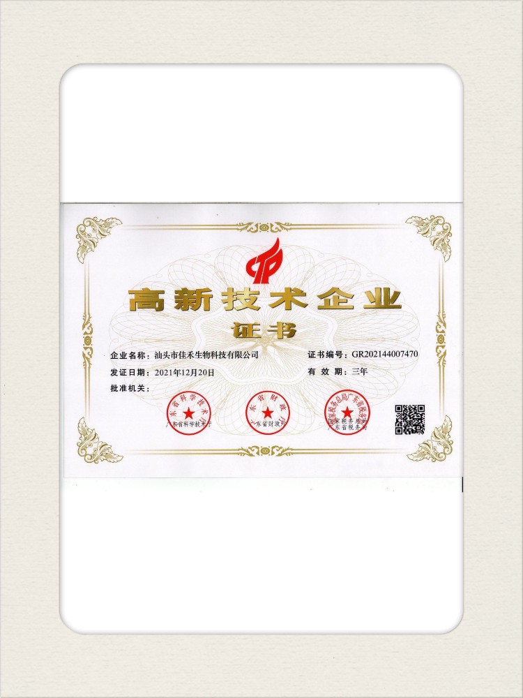 汕頭佳禾生物科技有限公司是一家致力于氨基酸及其衍生物研發(fā)、生產(chǎn)和銷售的國家高新技術(shù)企業(yè),先后通過了國家藥品GMP認(rèn)證,ISO9001質(zhì)量體系認(rèn)證、ISO14001環(huán)境管理體系認(rèn)證。目前,公司擁有“廣東省專精特新中小企業(yè)”、“廣東省氨基酸產(chǎn)品工程技術(shù)研究中心”、“汕頭市生物發(fā)酵工程技術(shù)研究開發(fā)中心”、“汕頭市知識產(chǎn)權(quán)優(yōu)勢企業(yè)”、“多項(xiàng)國家發(fā)明專利”、“廣東省守合同重信用企業(yè)”等多項(xiàng)資質(zhì)和榮譽(yù),旗下“佳禾牌”系列產(chǎn)品已成為原料藥行業(yè)知名品牌。 新泰市佳禾生物科技有限公司成立于2012年8月,注冊資金2億元,公司位于山東泰安新泰市新汶工業(yè)園區(qū),是國 家級高新技術(shù)企業(yè)、山東省“專精特新”企業(yè)、山東省制造業(yè)單項(xiàng)冠軍企業(yè)、泰安市科技型中小企業(yè)、泰安市農(nóng)業(yè)產(chǎn)業(yè)化龍頭企業(yè)、中國生物發(fā)酵產(chǎn)業(yè)協(xié)會理事單位。
